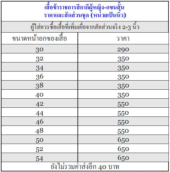 - เสื้อข้าราชการสีกากีแขนสั้น สำหรับผู้หญิง