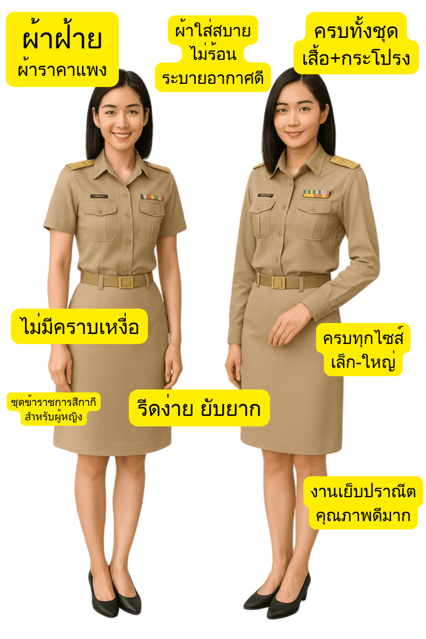 ชุดข้าราชการหญิง ผ้าฝ้ายแท้ ใส่สบาย พร้อมส่งทุกไซส์